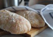 Чиабатта — итальянский белый хлеб, изготовляемый из пшеничной муки и дрожжей. В переводе с итальянского буквально это слово означает «ковровые тапочки», шлепанцы или ботинки, и это сдобное изделие называется так вовсе не из-за формы, как ошибочно считается.