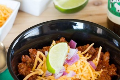 Густой и вкусный чили с говяжьим фаршем и фасолью. Подавайте, украсив по своему вкусу (авокадо, чеддер, лимонные дольки, репчатый лук).