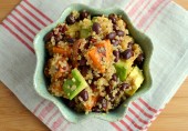 Острый салат из киноа и темной фасоли с добавлением авокадо, картофеля и перца чипотле.