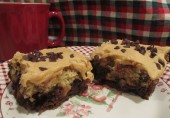 Пирожные брауни с банановым пюре, шоколадными чипсами и засахаренными грецкими орехами.