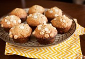 Кексы, приготовленные из сметаны, спелых бананов и шоколадных чипсов.