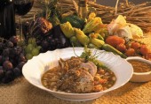 Основа этого блюда со сладковатым привкусом - мелко нарубленное, пряное мясо. Блюдо очень питательное и вкусное.
