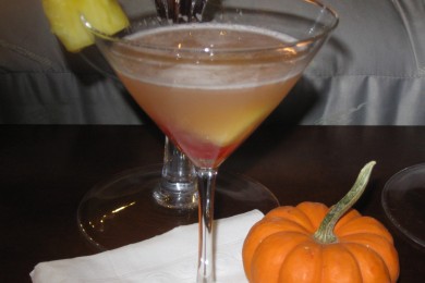 Коктейль из водки с ликером куантро, шампанским и соками - ананасовым, клюквенным и лаймовым.