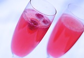 Итальянский коктейль беллини из фруктового пюре с игристым вином (Просекко, шампанским и т.п.). Попробуйте беллини с малиной и листьями мяты.