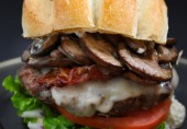 Бутерброды из говяжьих бургеров, приготовленных на гриле, жареных грибов и швейцарского сыра. Добавьте в бутерброд бекон, овощи и другие ингредиенты по вкусу.