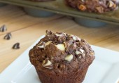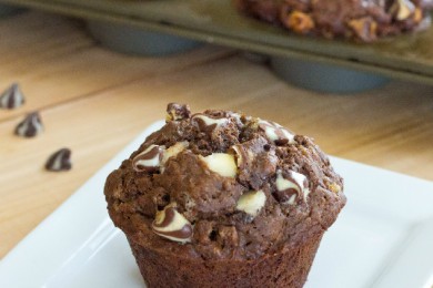 Шоколадные, банановые кексы с чипсами из белого шоколада.