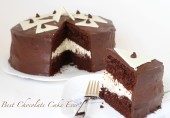 Вкуснейший торт из двух коржей с муссом из сливок и белого шоколада, покрытый ганашем и украшенный кусочками белого шоколада.