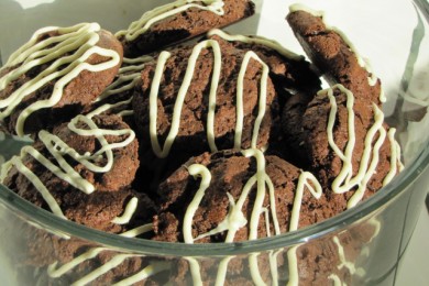 Печенье из шоколадного теста с корицей, украшенное растопленным белым шоколадом.