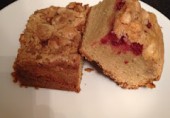 Мини-кексы со свежей (или замороженной) малиной, апельсиновым соком и корицей, посыпанные сладким топпингом с овсяными хлопьями и корицей.