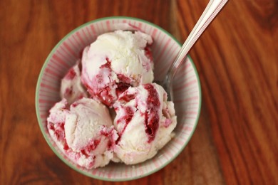 Сливочно-лимонное мороженое с соусом из малины, черники и клубники с лимонным соком.