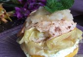 Это не традиционный яблочный штрудель! Блюдо больше похоже на маленькие яблочные пироги. Подается с ванильным мороженым и теплым соусом.