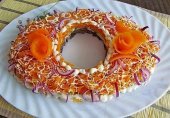 Кукуруза крабовые палочки огурец яблоко красное сыр колбасный майонез соль