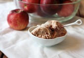 Сладкие тушеные яблоки со сцеженным йогуртом, замороженные в аппарате для приготовления мороженого.