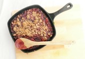 Крамбл из свежих или замороженных ягод (клубники, малины, ежевики и т.п.) с топпингом из жареных орехов с апельсиновым ликером и специями.