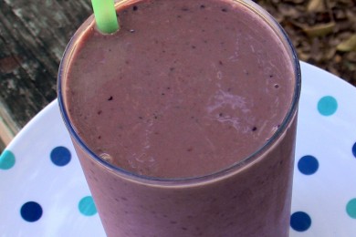 Вкусный и полезный напиток из овсяных хлопьев с ягодным миксом (клубникой, черникой, ежевикой и малиной), шпинатом, йогуртом и нежирным молоком.