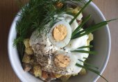 Теплый салат с говяжьим языком.