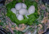 Оливье с языком и перепелиными яйцами