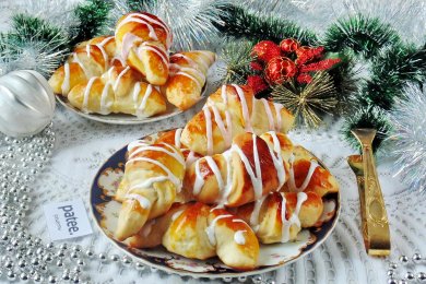 Небольшие, ароматные, воздушные рогалики с различной начинкой - отличная домашняя выпечка. Со сладким содержимым - хорошее дополнение к чаю, кофе, компоту.