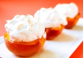 Удивительно вкусное угощение, которое не оставит равнодушным ни одного сладкоежку - спелые персики с безе.
