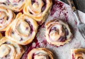 Испеките к завтраку или к чаю булочки на пахте с миндальной пастой и свежей черникой.