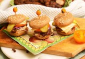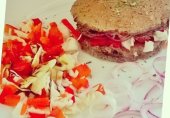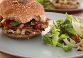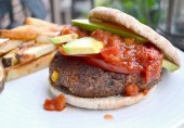 Захотелось приготовить бургер. Причем, не простой обычный фастфудный, а Супербургер!  Быстрый перекус из нежных булочек, напоминающих маффины, с жареной курочкой и запеченым яйцом, рецепт из журнала RussianFoodie.  Обязательно приготовьте эти мини-бургеры с семгой на следующей вечеринке!  Очень вкусные бургеры с мясом индейки, оливками, вялеными помидорами и орегано.  Вкусные, сочные бургеры с котлетой из бобов, кукурузы, сальсы с дольками авокадо и помидорами.