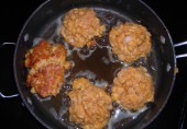 Вегетарианские бургеры из киноа с консервированной фасолью, кукурузой, луком, чесноком, халапеньо и сухарями, обжаренное на растительном масле.