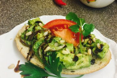 Экзотический постный бутерброд с авокадо и кедровыми орешками.