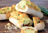 Батон с начинкой из ветчины и взбитых яиц с сыром, запеченный в духовке. При желании начинку можно заменить или добавить другие ингредиенты - мясо, овощи, зелень и т.