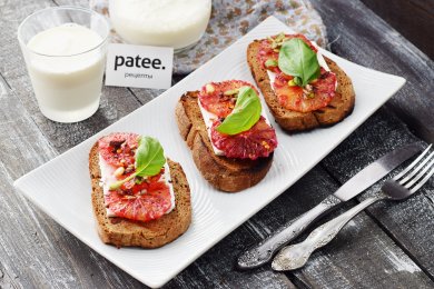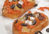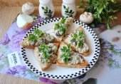 Оригинальное сочетание зеленого и розового перца добавляет этой закуске легкую пикантность,а тающая текстура придаёт тостам нежность.