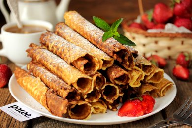 Вафельные, хрустящие трубочки с кремом из взбитых сливок отлично подойдут к чаю, кофе, молоку в будни и на праздничный стол.