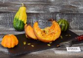 Предлагаю вам приготовить очень вкусный, ароматный и сочный гарнир тыкву, запечённую с травами и сыром в духовке.