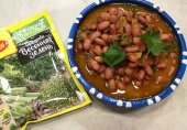 Блюдо из лимской фасоли, запечённой с креветками и овощами под соусом “Маринара”.