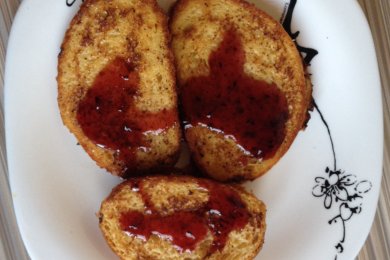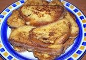 Испанские гренки торрихас, замоченные в молоке с корицей, цедрой лимона и сахаром, покрытые взбитым яйцом с растительным маслом и обжаренные на сковороде.