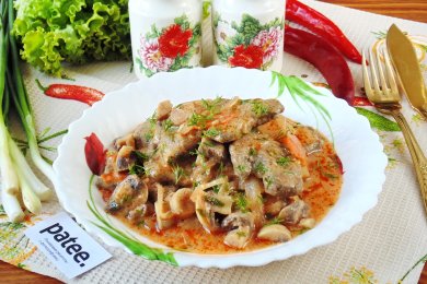 Гуляш из говяжьей печени с грибами