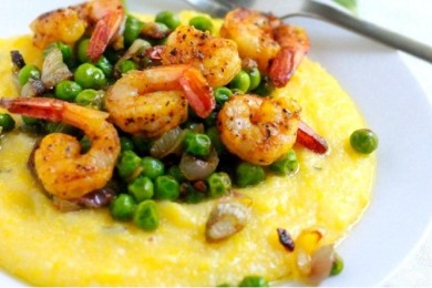 Полента делается из варенного кукурузного зерна, желтого или белого. Приготовление поленты не сложная наука, но есть некоторые серьезные технологии, которым нужно следовать, как например количество воды - не слишком много, иначе блюдо будет липким, но и не слишком мало, чтобы оно не было густым.  Простое и вкусное блюдо - жареные креветки с чесноком, кориандром, лимонным соком и специями.  Креветки, покрытые целым букетом специй и обжаренные в масле.