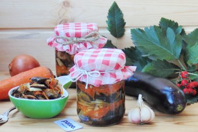 Пользуемся изобилием баклажанов и готовим на зиму отличный салат в кисло-сладком маринаде. Очень симпатично смотрится салат в банке, ведь овощи выкладываются слоями.