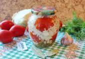 Если обычными маринованными помидорами вы уже запаслись на зиму, то предлагаю еще один рецепт помидоров, на этот раз с капустой.