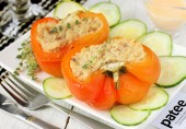Начинка из куриного мяса и кускуса- отличный вариант для фарширования овощей! Таким образом можно приготовить не только перец- для фарширования можно использовать твёрдые помидоры, кабачки, баклажаны.
