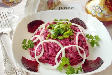 Этот простой и вкусный салат из сельди со свеклой альтернатива “Шубе”. В нем немного меньше ингредиентов, но и гораздо меньше жира, потому что он заправлен не майонезом, а сметаной.