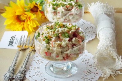 Такой салат станет прекрасным дополнением к горячему отварному картофелю на завтрак, в обед или ужин.