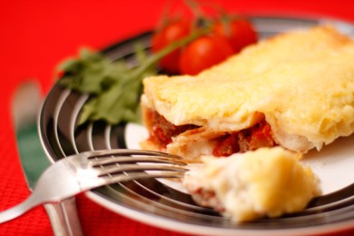 Каннеллони с фаршем под соусом бешамель