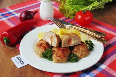“Уштипцы” - котлеты с сыром и копченой корейкой. Блюдо сочное, ароматное и вкусное. В оригинале они готовятся из свиного и говяжьего фарша.