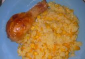 Хочу поделится очень вкусным рецептиком )) Запеченные голени с рисом и кукурузой в духовке.