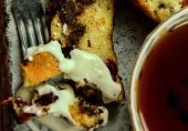 Замечательный вариант к чаю, кофе, какао и молоку. Для тех, кто предпочитает в меру сладкое. Выпекать нужно до появления красивой румяной корочки, мой подрумянился даже больше, чем должен был, но на вкус это не повлияло.