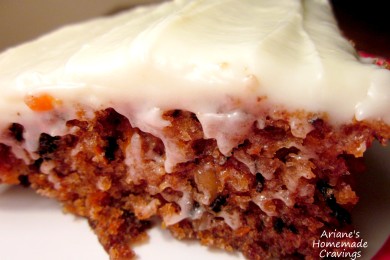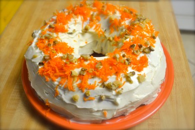 Морковный пирог с ананасами, кокосовой стружкой и орехами, покрытый сливочной глазурью.