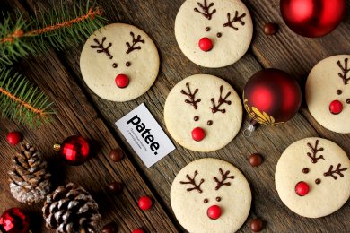 Мягкое и вкусное новогоднее печенье, приготовленное из предложенных в рецепте ингредиентов, можно в считанные минуты превратить в настоящее новогоднее лакомство - в симпатичных оленей, которые точь-в-точь напоминают мультяшных оленей из упряжки Деда Мороза!
