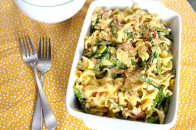 Паста карбонара со спаржей и беконом