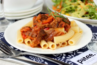 Паста с говяжьим фаршем, соусом маринара, пармезаном и моцареллой. Быстро и вкусно.