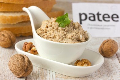 Готовим праздничный домашний паштет из грецких орехов и яиц. Этот вкусный паштет очень необычный и на первый взгляд (и укус) невозможно сразу определить, какие ингредиенты входят в его состав.  Паштет из куриной печени с шампиньонами, запечённый в духовке, в остывшем виде отлично нарезается тонкими ломтиками, которые идеально подходят для приготовления бутербродов!  Паштет из куриной печени со сливками имеет нежную и гладкую консистенцию, благодаря чему его не только удобно намазывать на бутерброды!  Вкусный, нежный паштет из куриной печени с кедровыми орешками и тимьяном- отличная закуска, намазка для бутербродов, начинка для тарталеток, закусочных эклеров, волованов и профитролей!  Полезный паштет из белой фасоли с грецкими орехами, яйцами и жареным луком- очень вкусная закуска!