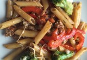 Пенне с броколли, перцем и рубленным мясом
